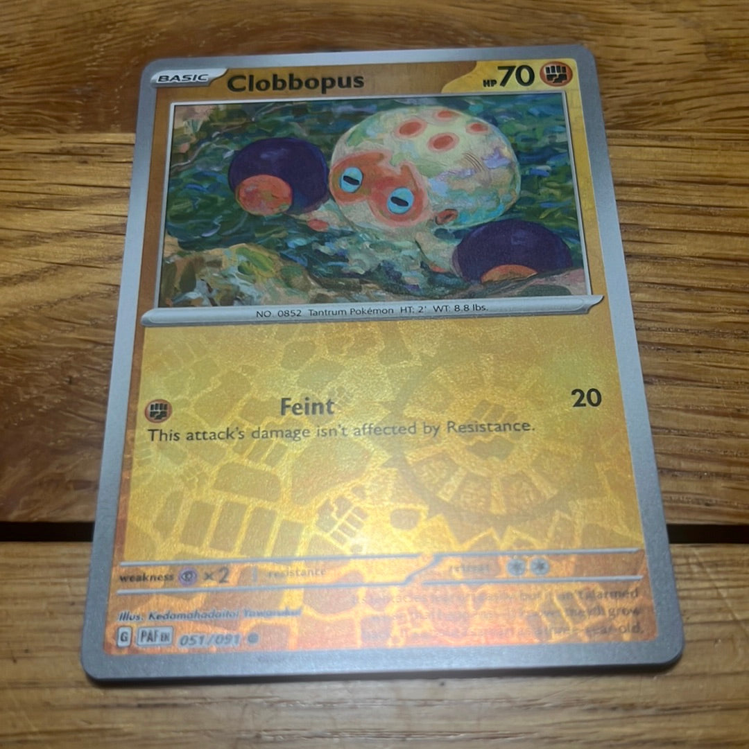 - Paldean Fates: Clobbopus [Reverse Holo] #51 Paldean Fates: Clobbopus [Reverse Holo] #51