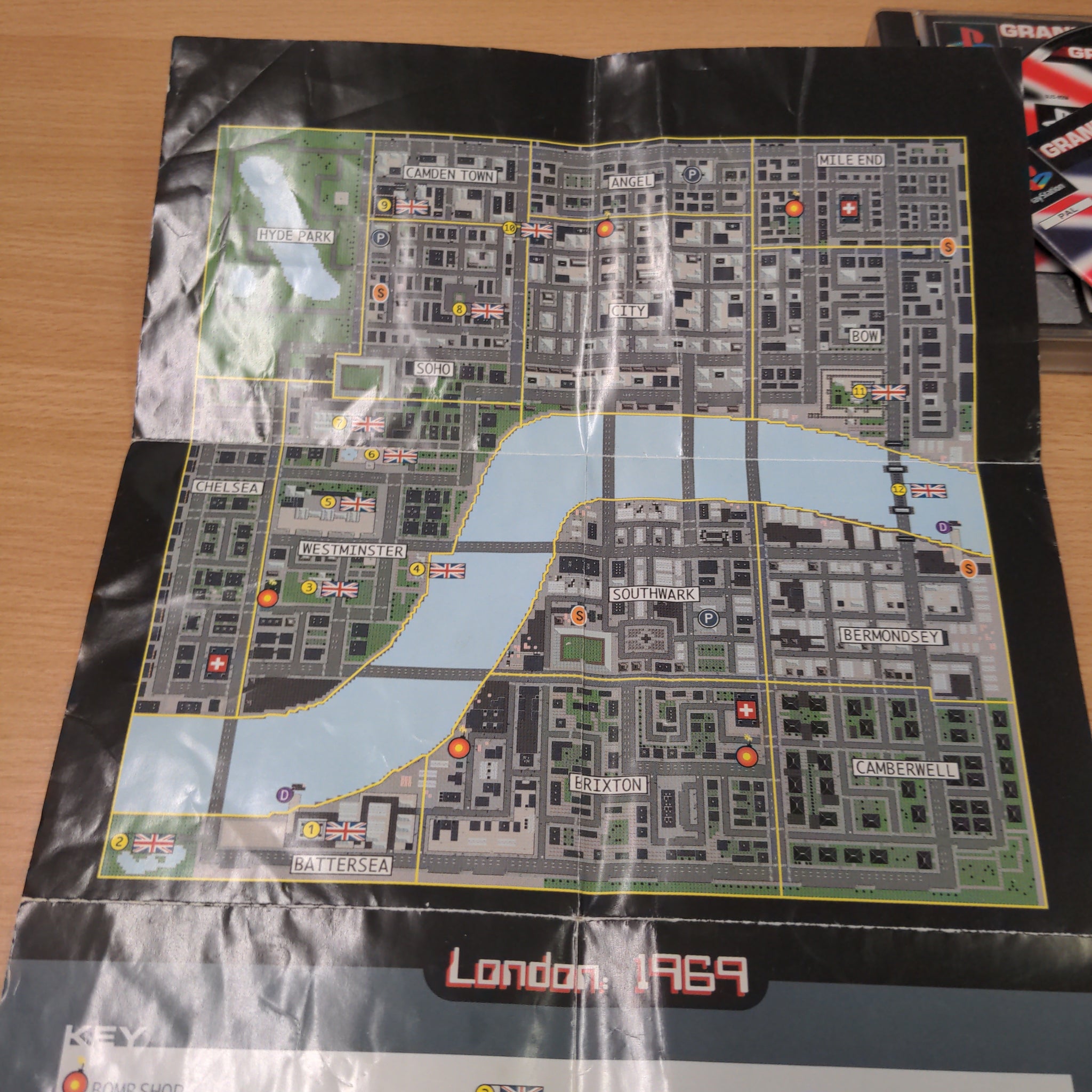 Complete with manual in Good condition. There is a crack on the back of the case and hinge is loose. There is wear to both manual and map.